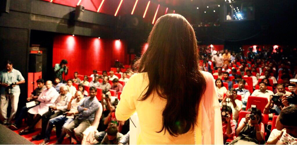 Keerthy looked so radiant & pretty in an #AMPM Anarkali & #Aquamarine jewellery at the recent pressmeet for Nadigaiyar Thilagam